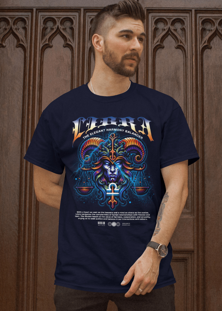 Show off your cosmic style with this bold and artistic Libra zodiac t-shirt. Featuring a vibrant mystical design with balanced scales, intricate patterns, and a striking Libra-inspired artwork, this tee perfectly captures the essence of balance, harmony, and justice. A must-have for astrology lovers and those who embrace their Libra spirit.