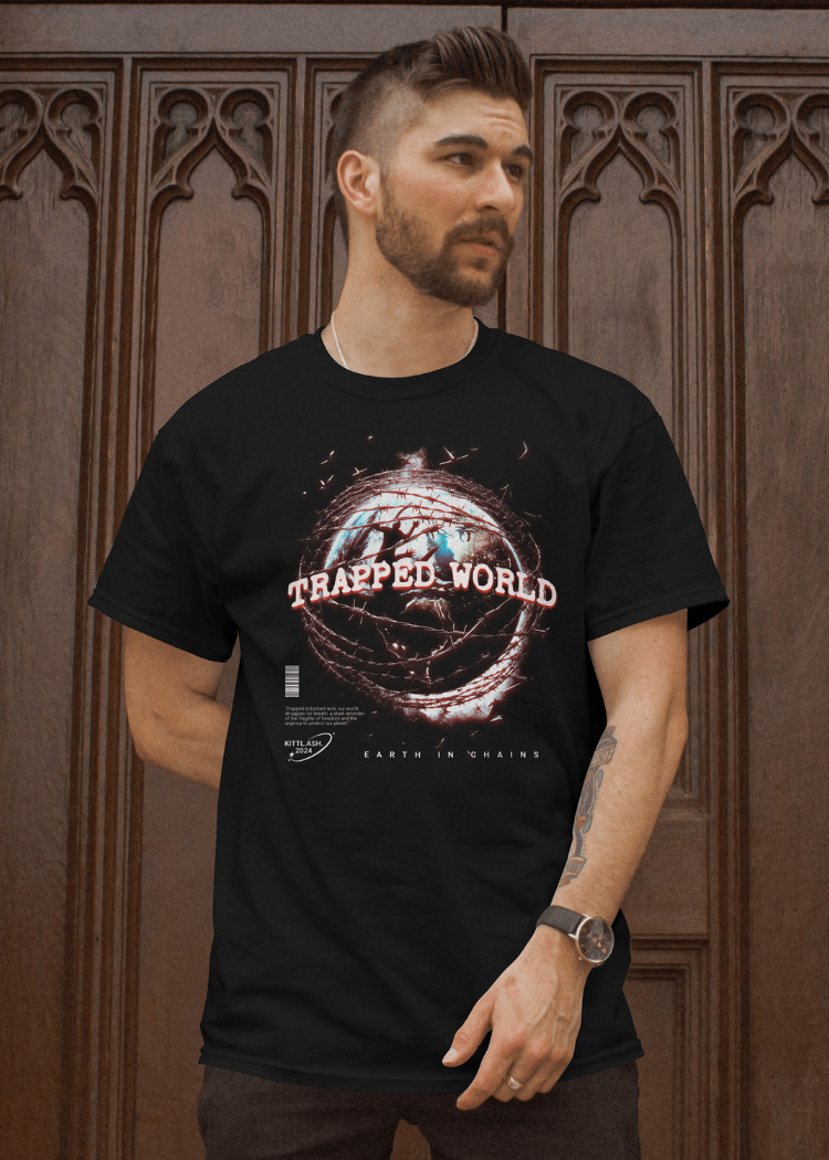 Make a bold statement with this striking Trapped World t-shirt, featuring a powerful design of Earth wrapped in barbed wire. Symbolizing struggle, resistance, and the fight for freedom, this tee is perfect for those who want their fashion to reflect awareness and edge. Crafted for comfort with a rebellious artistic vibe, it’s an ideal choice for streetwear lovers and statement-makers.